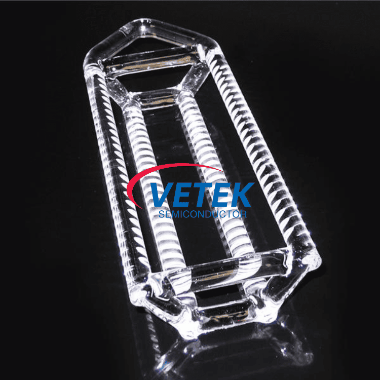 Barcile cu cuarț de placă sunt instrumente de precizie indispensabile în procesul de fabricație a semiconductorilor. Acesta joacă un rol vital în procesul de difuzie la temperaturi ridicate și este utilizat pe scară largă în LED-uri, celule solare, dispozitive tradiționale semiconductoare, diode și alte câmpuri. În aceste aplicații, funcția principală a bărcii de placă este de a transporta în mod stabil și de a plasa cu exactitate napolitane cu semiconductor pentru a se asigura că napolitane sunt încălzite uniform în cuptorul de difuzie la temperatură ridicată, realizând astfel etape cheie de proces, cum ar fi dopajul sau oxidarea. Proprietățile sale fizice excelente fac ca barca de wafer de cuarț să fie piatra de temelie a dispozitivelor semiconductoare de înaltă performanță.